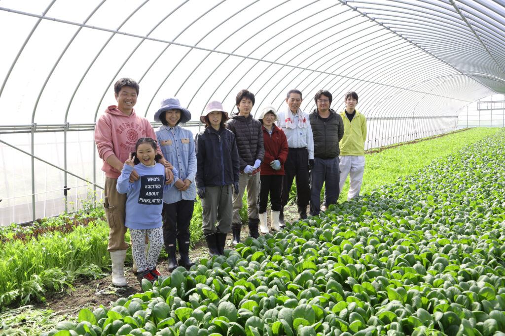 無化学肥料、無農薬で葉物野菜を中心に年間21品目を生産しています。そのうち17品目をハウスで周年栽培しています。 有機JAS認証で認められた農薬も一切使用せず植物性の有機質資材のみでビーガン、菜食主義の方々や、世界に通用する野菜を栽培しています。
