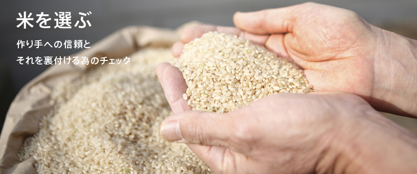 有機栽培米・特別栽培米をつくるのはとても大変な事。 日本全国の生産者の米の中から栽培状況や品質のチェックをして、安心安全にこだわった米を選んでいきます。 自然の中でつくられるものだから、毎年同じ米をつくる事は難しいかもしれません。 しかし生産者の方々にとっても、生活者にとっても大事な米。「田んぼ(圃場)」「つくり方」「できた米」の3つを生活者の代理として厳しくチェックさせていただいています。